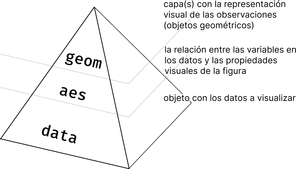 aes() determina los vínculos entre las variables y las propiedades del gráfico