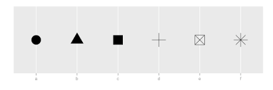 Podemos especificar manualmente las formas y colores para las categorías con un vector que se le da al argumento values