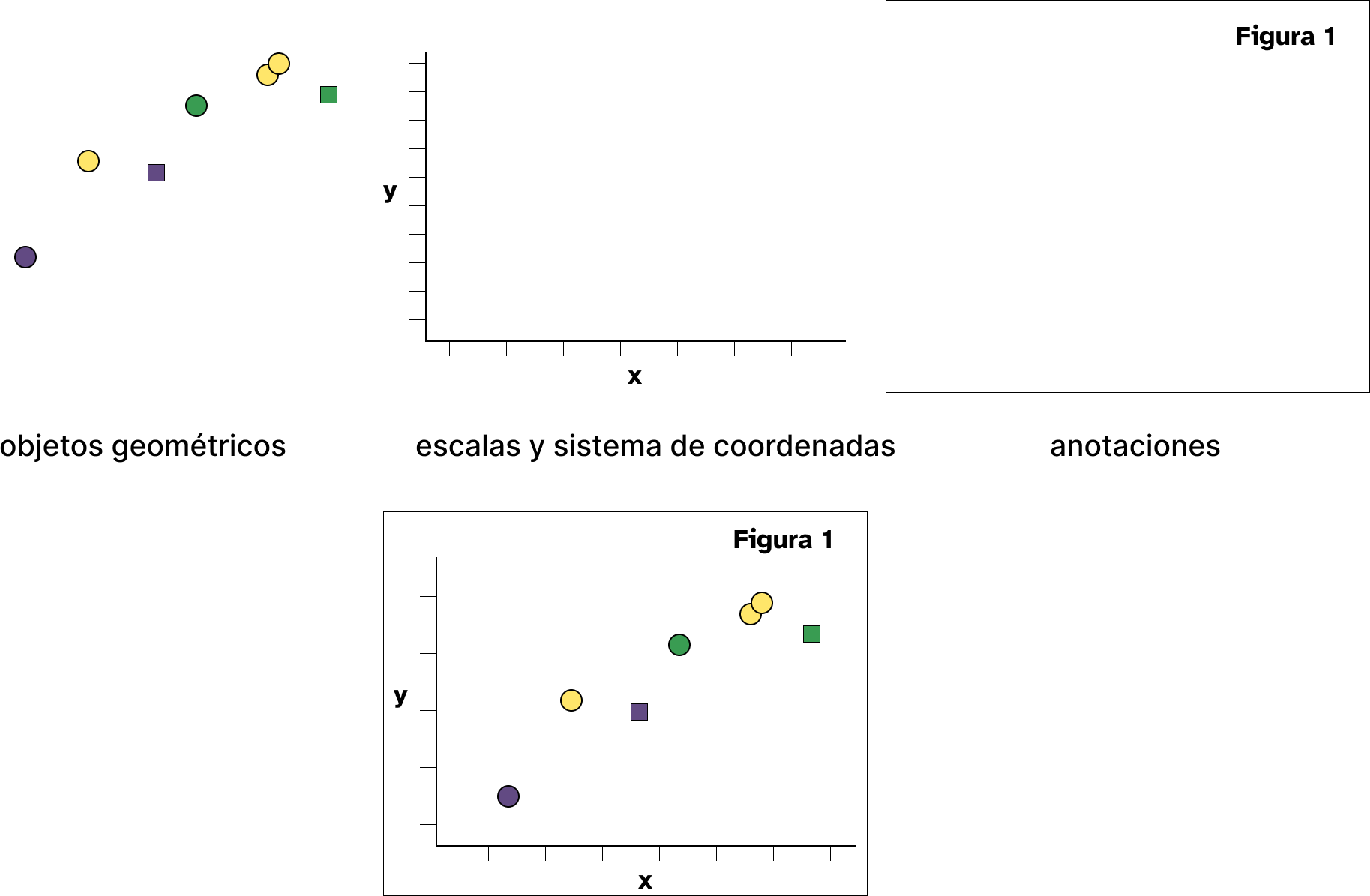 Una gramática puede ayudar a construir oraciones diferentes con una pequeña cantidad de verbos, sustantivos y adjetivos, en lugar de memorizar cada oración específica. Una pequeña cantidad de los componentes básicos de ggplot2 y de su gramática puede crear cientos de gráficos diferentes.
