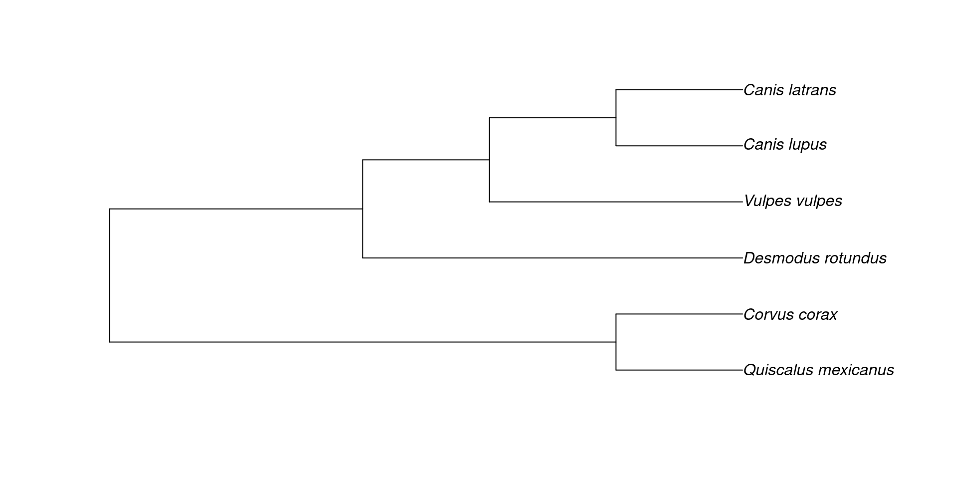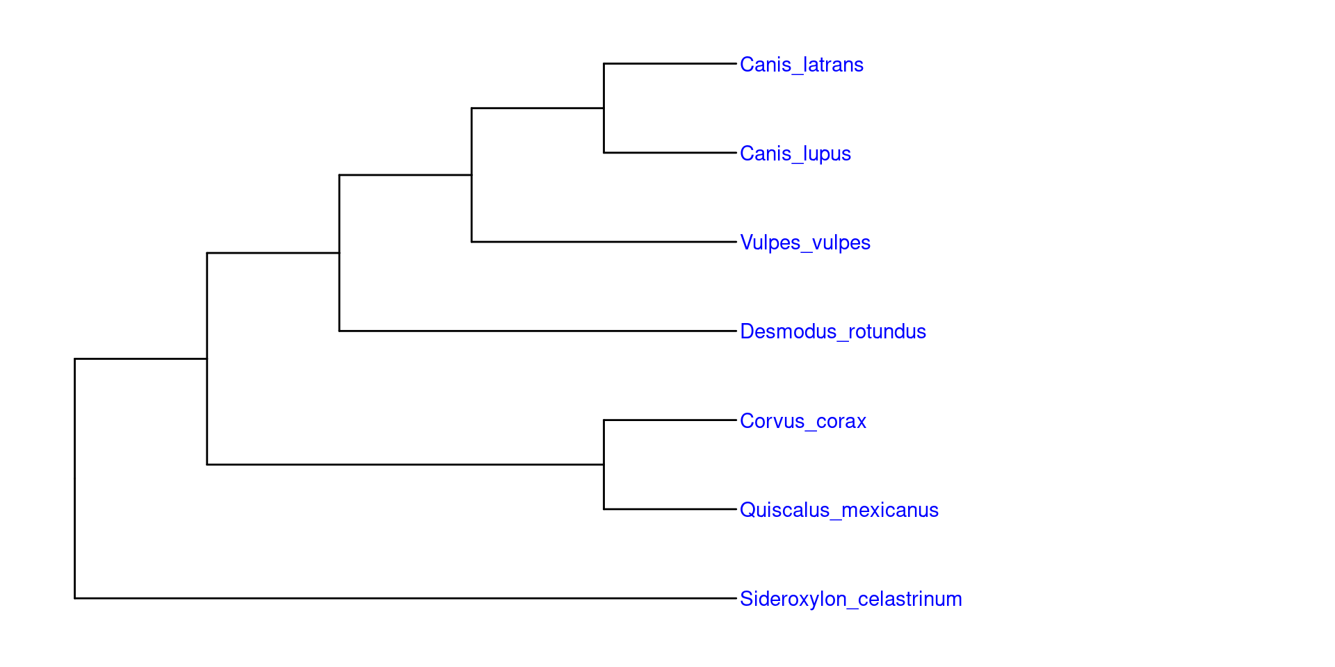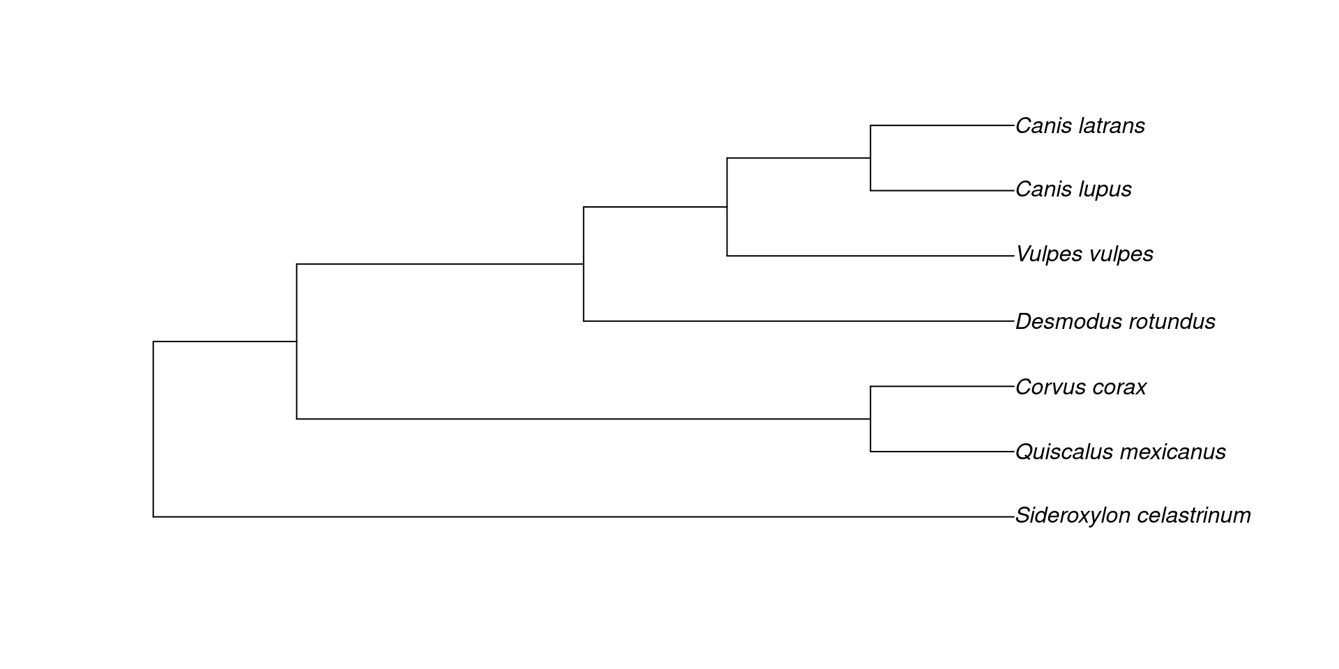 otl_tree<-rotl::tnrs_match_names(c("Quiscalus mexicanus","Canis lupus","Corvus corax","Canis latrans","Vulpes vulpes","Desmodus rotundus","Sideroxylon celastrinum")) %>%
