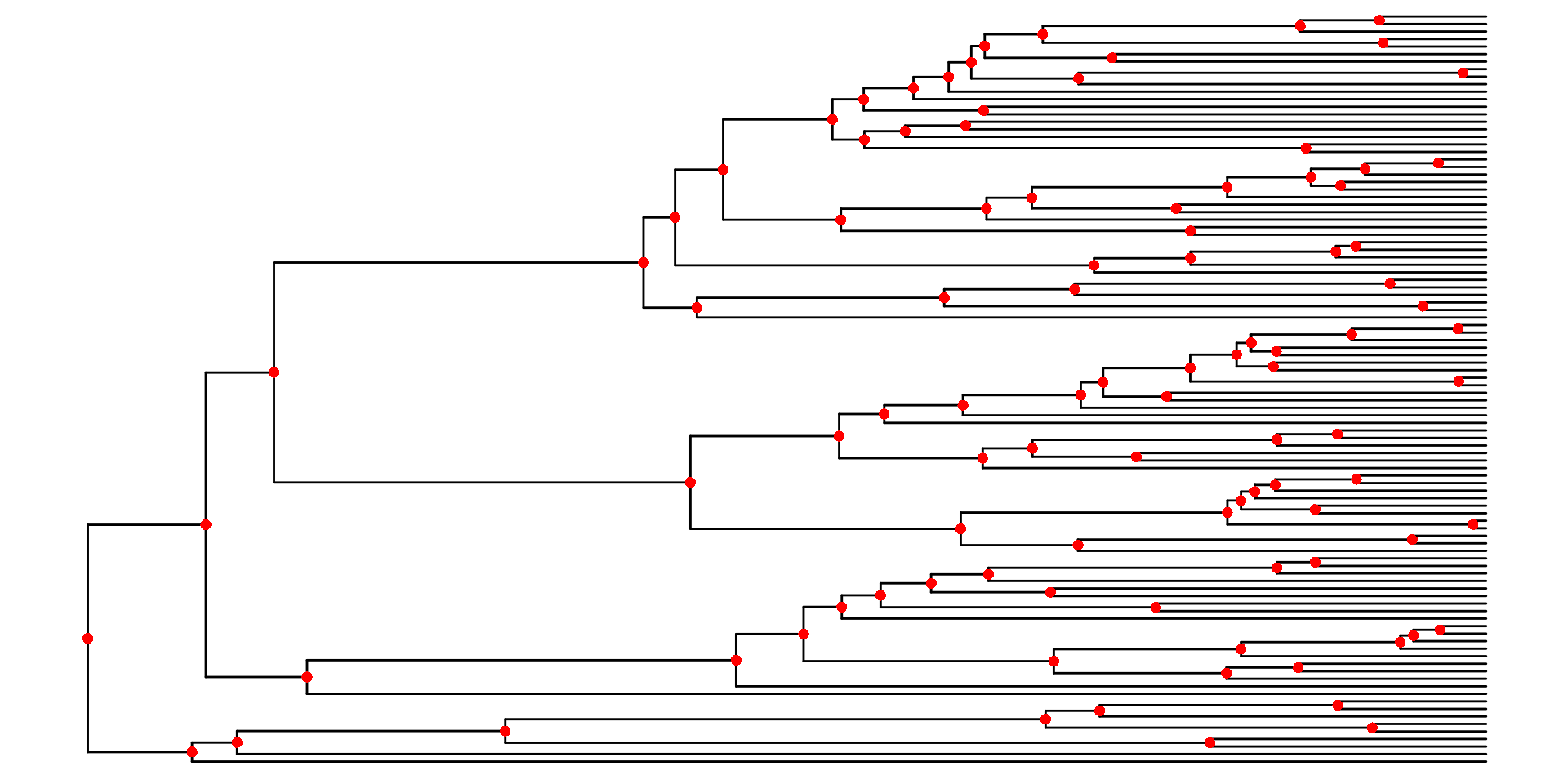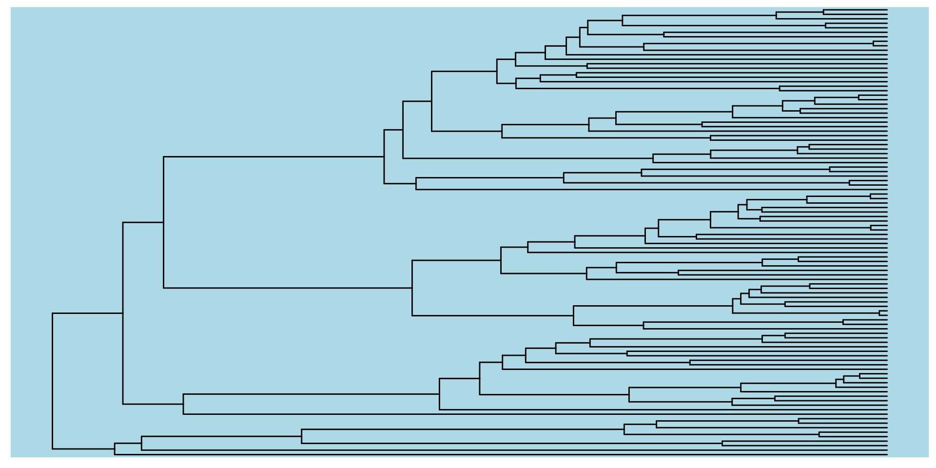 Utilizando estas parametrizaciones, podemos crear una filogenia bastante atractiva: