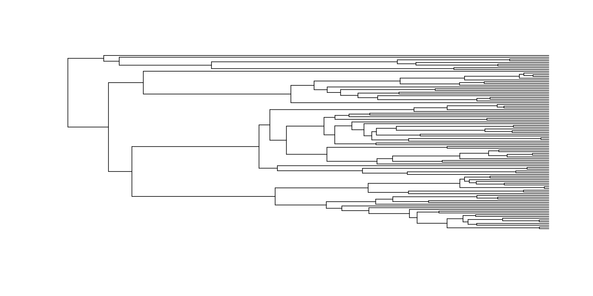 Entonces, primero recuperamos un representante de cada grupo, ape es muy bueno para esto usando la función keep.tip: